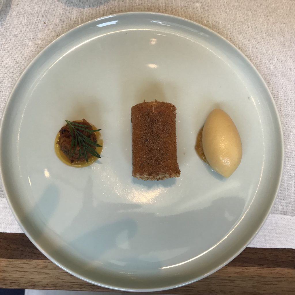 Quitte, Macadamia Nougat & Passionsfrucht
